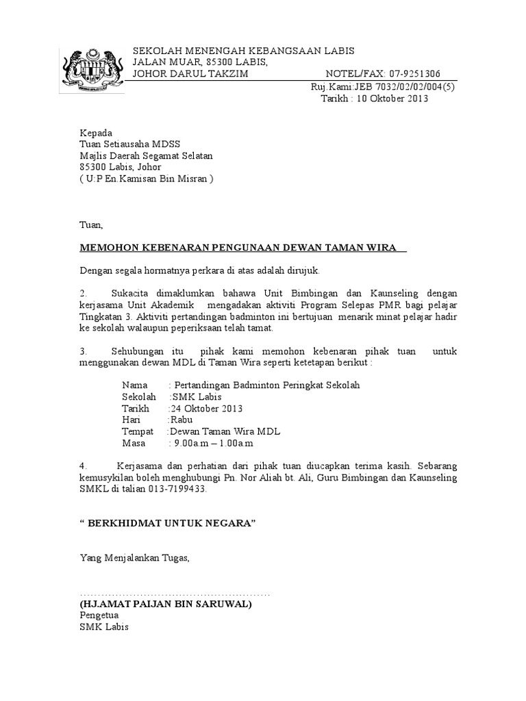 Contoh surat permohonan kerjasama program malaysia. PERSATUANIBUBAPA DAN GURU SEKOLAH KEBANGSAAN DESA PETALING DESA PETALING57100KUALA LUMPUR. 10 orang murid tingkatan 5 3.